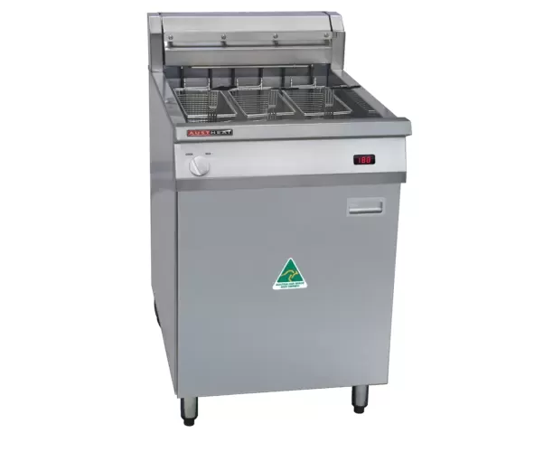 Experience the Austheat AF813R electric deep fryer: engineered for commercial kitchens needing rapid recovery. With a 43-litre capacity and superior temperature control, it ensures quick, consistent frying for crispy perfection. Energy-efficient, durable, and easy to clean, the AF813R meets high demands with top performance.